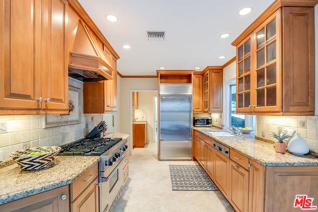 Bright, airy, and spacious, this 3 bedroom, 2 bath charmer in Toluca Lake is the perfect place to call home. The comfortable living room with beautiful wood floors and brick replace will vie for your attention with the equally welcoming family room with tile ? or and matching? replace. Both get bathed in lovely natural light, as does the dining room, which has doors that open to a lush backyard that features a stone replace, multiple seating areas, and serene vegetable and ower gardens. Also opening up to the back is the large sunlit kitchen, which boasts a breakfast nook, granite countertops, sub-zero fridge, Viking stove, and tiled backsplash. And just o? the kitchen, you'll find a separate, oversized laundry room. Each large, inviting bedroom has gorgeous hardwood floors-and a detached, two-car garage with built-ins puts the finishing touch on this artful beauty.