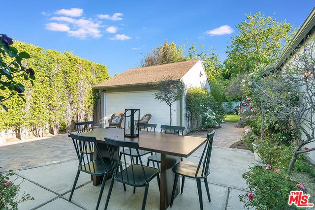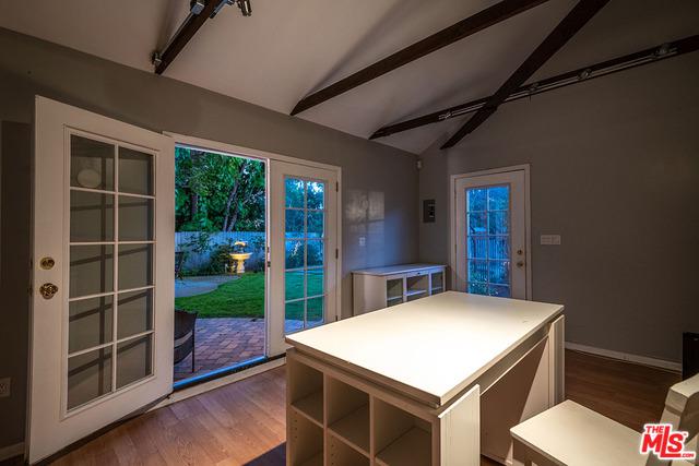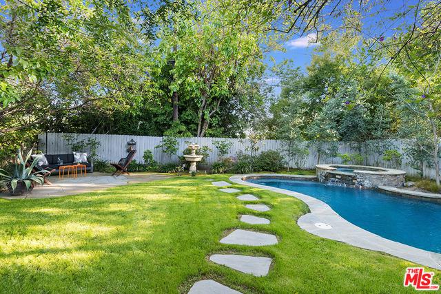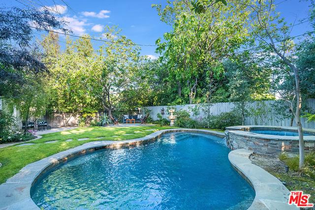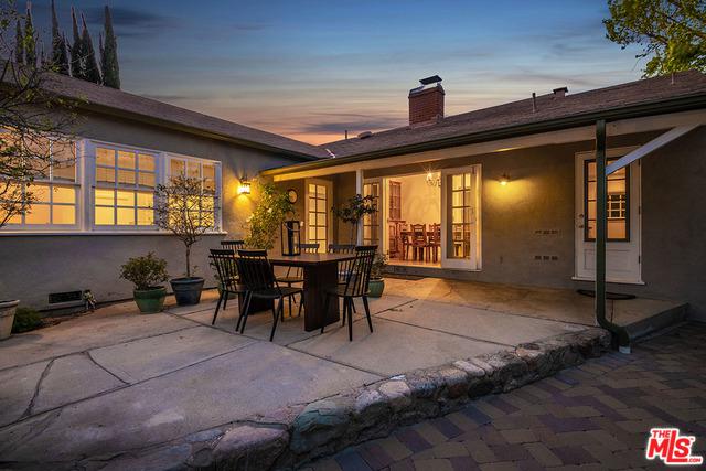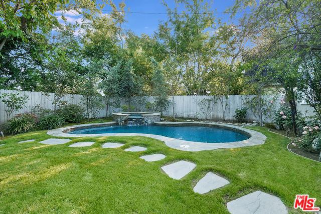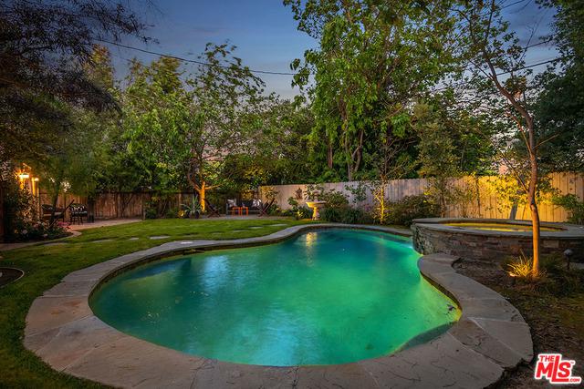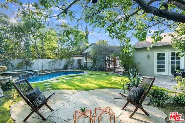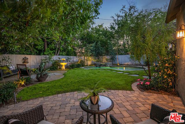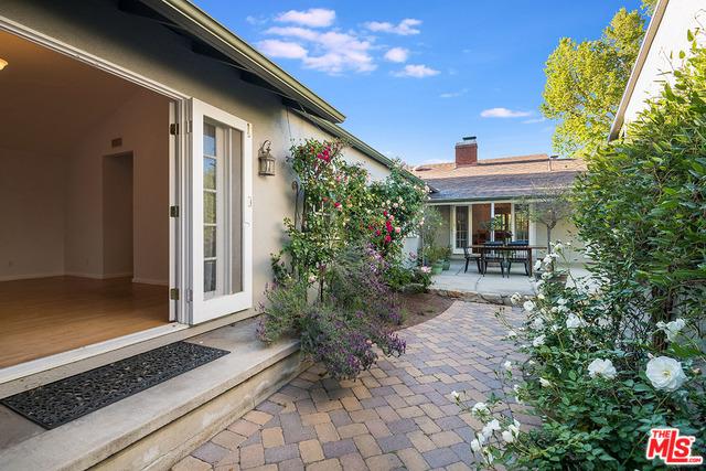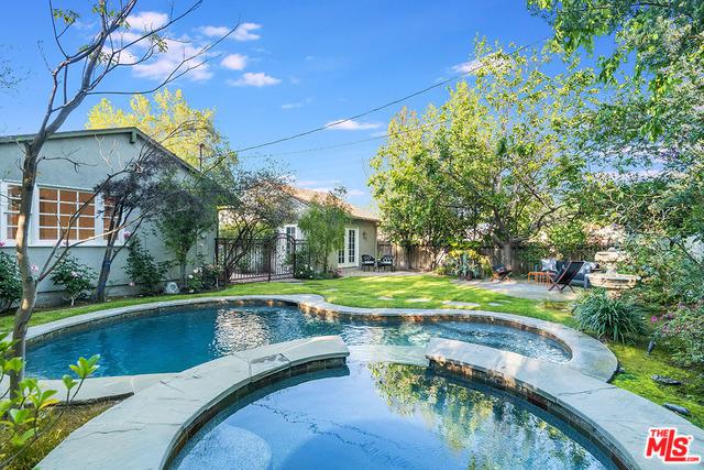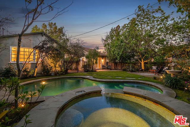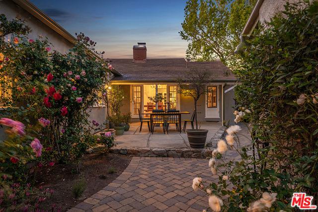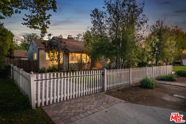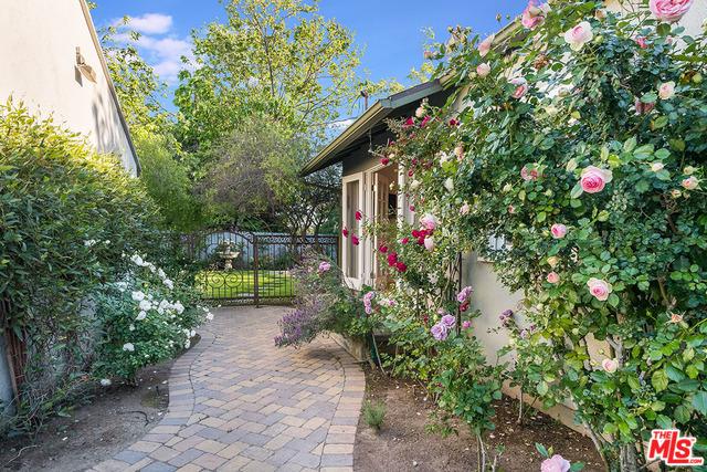 Charming Valley Village Traditional. Picturesque and updated for today's tastes with clean lines, hardwood floors and sunny spaces. Entertainer's plan has large living room with brick fireplace, formal dining room and spacious media/family room under vaulted ceiling with French doors to outdoors. Bright galley kitchen with s/s appliances incl. gas range, glass-front cabinets and easy underfoot cork flooring provides streamlined function, generous storage and workspace. Light-filled bedrooms have hardwood floors. Bathrooms remodeled with new tile, fixtures, etc. Master has big walk-in closet complete with custom storage system. Private gated oasis features sweeping patio with covered area for grilling/dining plus beautiful pool and spa! Fully landscaped with rose gardens. Modern detached office/studio with separate entrance, raised beam ceilings, hardwood flooring, bi-fold French doors and private patio. Excellent schools, shopping and dining in a wonderful community.