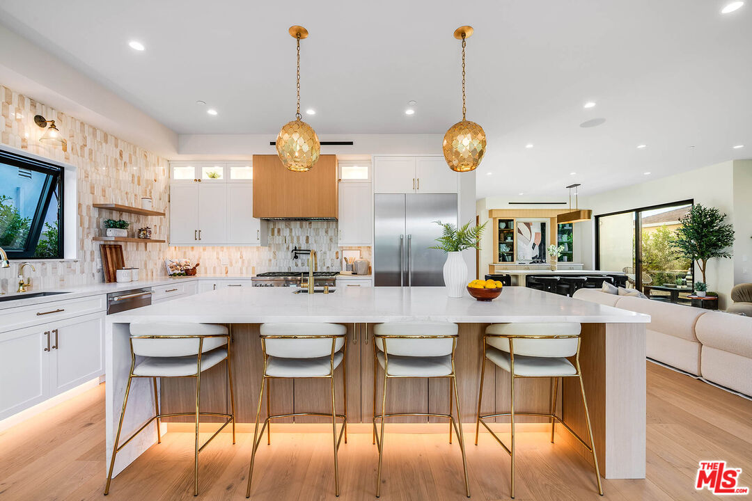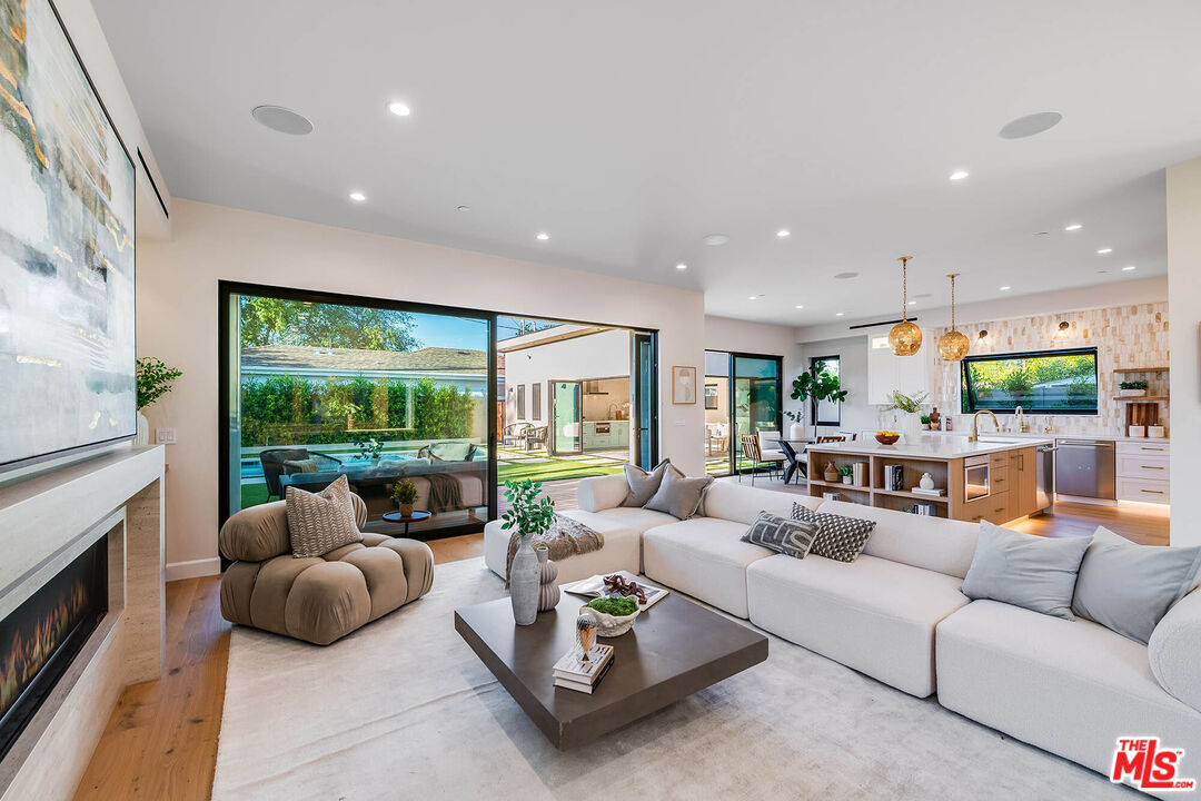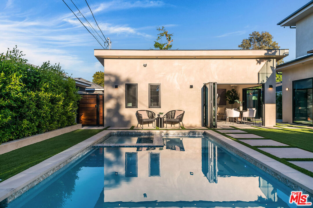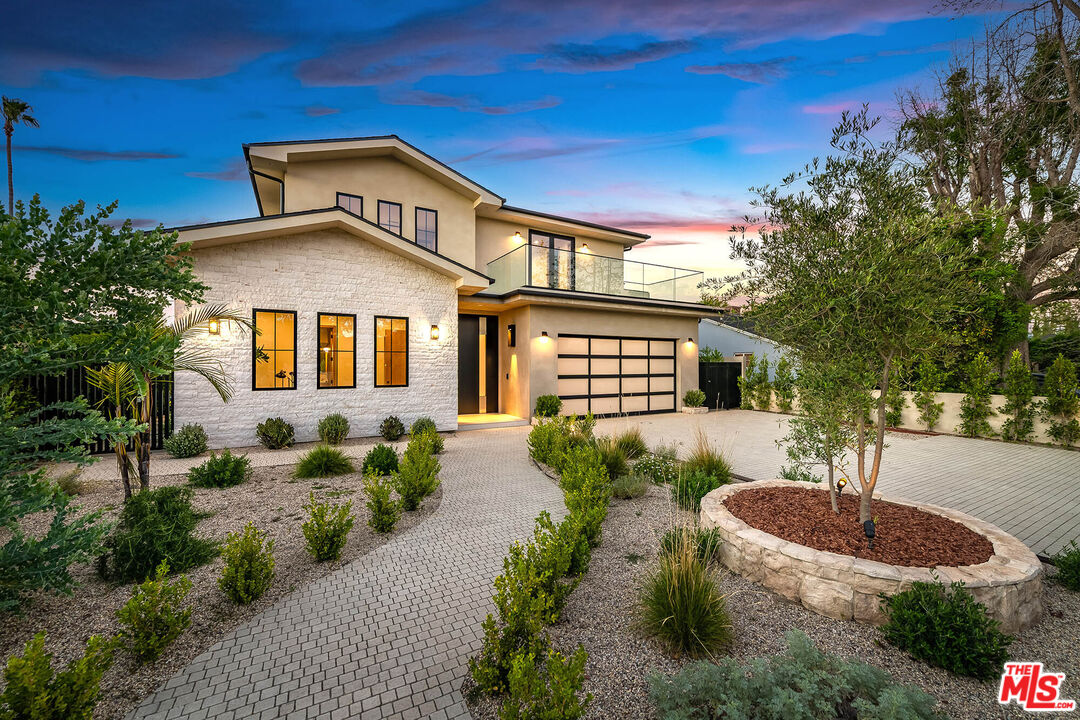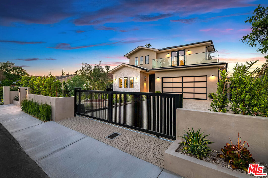 Set on a coveted street in Valley Village, this newly constructed residence is a striking expression of modern luxury and design. Spanning approximately 4,000 square feet, the main residence showcases five generously scaled bedrooms and four and a half bathrooms, complemented by a detached one bedroom, one bathroom ADU that serves as a true extension of the property, offering flexibility as a private guest residence, executive office, or bespoke wellness retreat. A dramatic entry begins with a statement pivot door, leading into an open layout defined by soaring ceilings, walls of glass, and premium European aluminum doors and windows that create seamless indoor outdoor living. The chef's kitchen is outfitted with custom cabinetry, Thermador appliances, Caesarstone quartz countertops, and striking onyx tile backsplash, flowing effortlessly into the main living spaces designed for both everyday comfort and elevated entertaining. Throughout the home, curated finishes include custom millwork, Visual Comfort lighting, and Walker Zanger tile. The backyard is a true retreat, featuring a resort style pool and spa with Jandy wireless controls, a custom designed BBQ and entertaining area, paired with a heated covered patio for seamless year round enjoyment. Upstairs, the primary suite serves as a private escape with a spa caliber bath featuring Newport Brass fixtures and a custom walk in closet, along with a private balcony. Three additional bedrooms are thoughtfully positioned, complemented by a second balcony that enhances natural light and indoor outdoor flow.A refined, design forward home that delivers luxury, craftsmanship, and presence in one of Valley Village's most desirable neighborhoods.