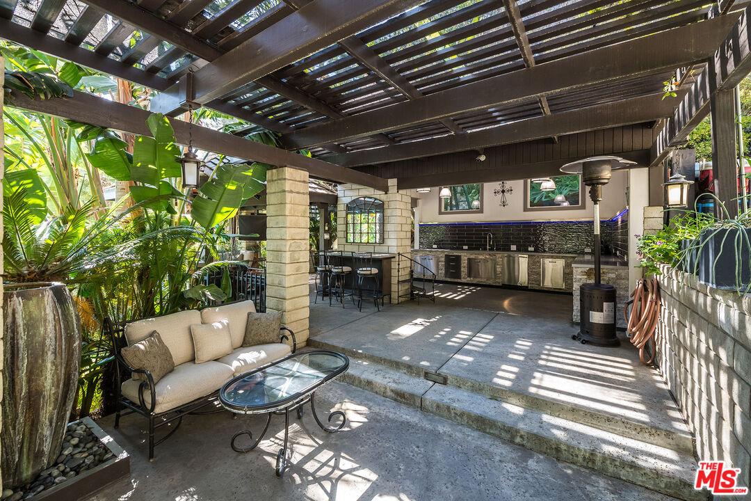 Discover your very own 1-acre private resort with this exquisite fully remodeled Mills Act 1920s Spanish-Mediterranean estate nestled at the end of a secluded cul-de-sac above Sunset Canyon. Situated on an expansive one-acre lot equipped with full acre fire shield and offering over 4,467 sq ft of elegant living space, this Mills Act-designated historical property combines timeless architectural beauty with significant property tax savings. Step inside to find grand interiors featuring an open two-story formal entry with dramatic staircase, a step-down formal living room with a soaring barrel ceiling, a large fireplace, crown molding, and wrought iron accents throughout. Natural light floods the gourmet chef's kitchen and great room, outfitted with Viking appliances, a pro-style 6-burner range PLUS 2 built-in ovens, quartz countertops, a massive island, and rich hardwood flooring. With 5 spacious bedrooms and 4 bathrooms, the layout suits both relaxing and entertaining. The romantic primary suite is a true retreat, complete with a steam shower, an oversized soaking tub, built-in cabinetry, and French doors that open to a wrought iron balcony overlooking your lush backyard. Outside, paradise awaits. Tropical, luau-inspired landscaping surrounds a sparkling pool with serene waterfalls, a fire pit, an outdoor kitchen and a covered patio, and multiple living and dining spaces all illuminated at night to create a magical private oasis. The expansive grounds include a sundeck, sports area, a three-quarter pool bath, and a large flat pad with permitted plans for an 800 sq ft ADU. Smart home upgrades, full 1 acre property fire protection shield that can be controlled remotely, full house back-up generator, 3 combined lots, and rare privacy make this an entertainer's dream and a one-of-a-kind opportunity. Located in the top-rated Burbank School District, with easy access to the 5 and 134 Freeways, this is more than a home it's a lifestyle. Come experience the rare beauty, charm, and serenity this estate offers!
