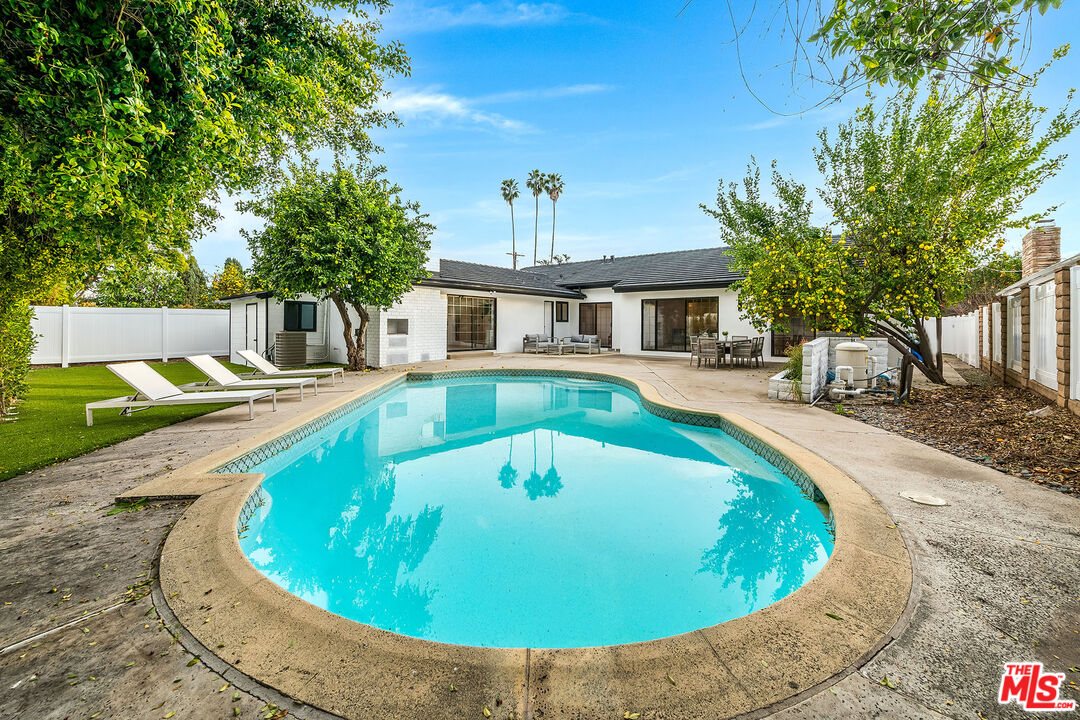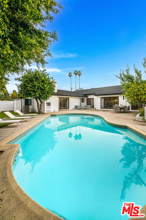 Welcome to 16517 Hartsook Street, a rare Encino offering where privacy, elegance, and modern luxury converge. Set behind gates on an expansive 9,790 sq ft lot, this tastefully redesigned single-story residence showcases 5 spacious bedrooms and 4 beautifully appointed bathrooms across 2,825 sq ft of thoughtfully designed living space. The expansive floor plan offers seamless flow, ideal for both everyday living and sophisticated entertaining. At the heart of the home is a gourmet chef's kitchen, designed to inspire culinary creativity with premium finishes and ample workspace. The formal dining room opens effortlessly to lush privacy hedges and the sparkling pool, creating a picturesque setting for memorable gatherings. An open-concept living area enhances the indoor-outdoor lifestyle, with direct access to the backyard retreat. Step outside to a serene, resort-style oasis featuring an inviting in-ground pool, expansive patio, built-in BBQ, and generous space for relaxation or entertainingall within a fully gated, exceptionally private setting. One of the largest lots in the neighborhood, this property is a true sanctuary while remaining conveniently located south of the 101 Freeway, close to premier shopping, dining, and top-rated schools. This is a rare opportunity to own a refined Encino home that perfectly balances luxury, comfort, and privacy.