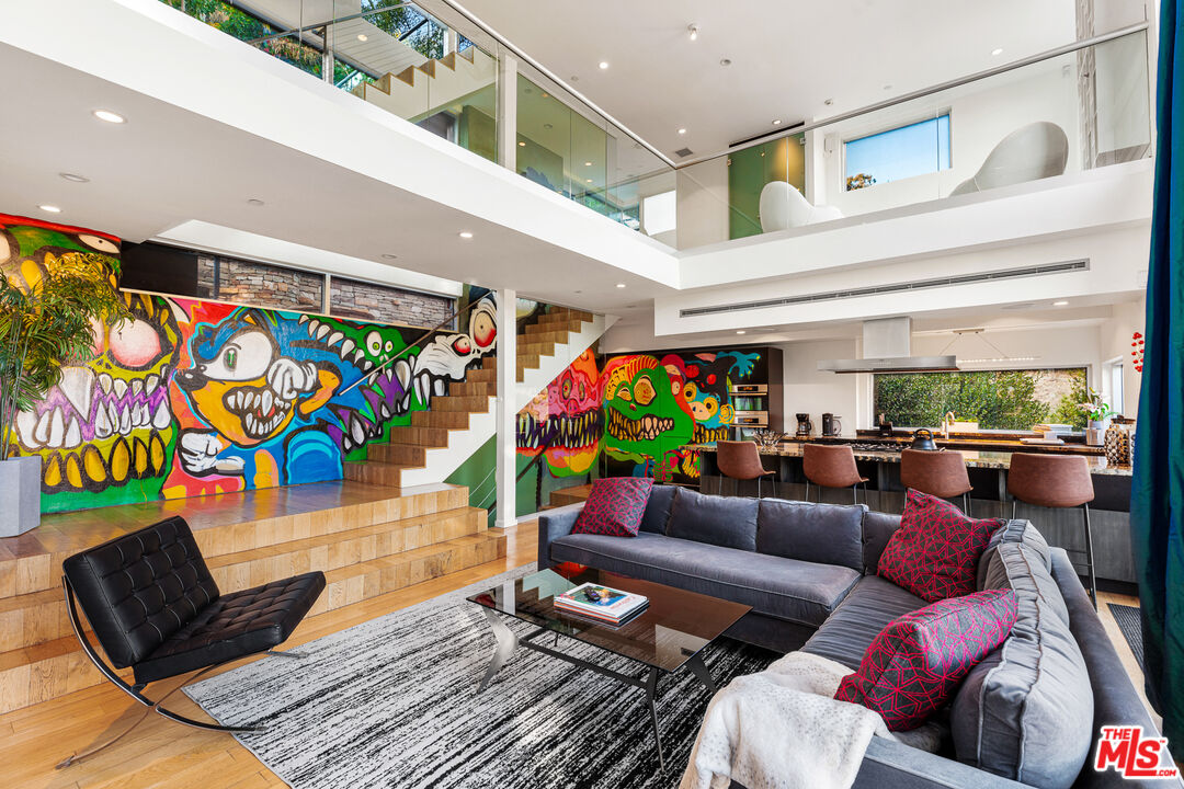 Iconic Hollywood Dell modern masterpiece. Designed by architect, Jay Vanos, with wall murals by R & B singer, artist & previous owner, Chris Brown. Nestled in an enchanting canyon cul-de-sac, the 2,800 sq. ft. home offers total privacy in close proximity to the 101 Fwy, major studios & Hollywood nightlife. Walls of glass along with soaring ceilings define interior/exterior spaces creating a breathtaking layout. An elevator provides access to 3 bedrooms, 3 bathrooms, multiple living areas, Boffi kitchen & baths with Bracht fixtures & a stunning primary suite featuring a large wet room with shower massage system & freestanding red tub. Enjoy resort-style living with beach-style saltwater pool & spa, waterfalls, lap swim jets, cabanas set in sand, a spectacular custom LED site lighting & colored LED light show as well as outdoor projector & screen, surround sound system, fire pits, entry/security system & cameras. Lot size 7.495 sq. ft.