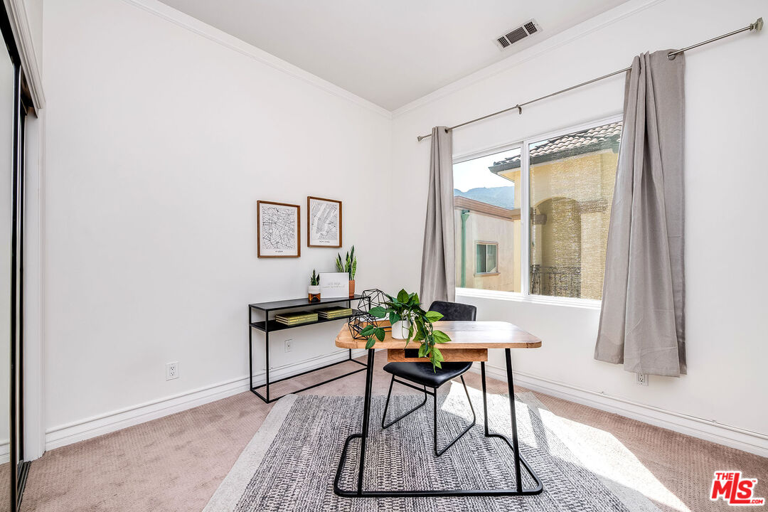 Exquisite Toluca Lake Townhome Upscale Living in a Private Cul-de-Sac. Nestled in a serene cul-de-sac just moments from the heart of Toluca Lake Village and Warner Bros. Studios, this stunning 1,540 sq ft luxury townhome blends sophisticated design with modern convenience. Offering a beautifully curated floor plan, this residence welcomes you with rich natural light, high ceilings on the main level, and timeless architectural details throughout. The grand living and dining area is ideal for entertaining, featuring hardwood floors, elegant crown molding, and a charming fireplace that anchors the space. The chef's kitchen is outfitted with premium stainless steel appliances, granite countertops, generous cabinetry, and a cozy breakfast nook that opens onto a tranquil, tiled patio framed by lush garden bedsperfect for indoor-outdoor California living. Upstairs, the expansive primary suite is a private retreat, with a romantic balcony, large walk-in closet, and a spa-like en suite bath complete with a jetted soaking tub, separate glass-enclosed shower, and a dual-sink granite vanity. Additional bedrooms are bright and airy, enhanced by plush carpeting. Thoughtful amenities include an extra-large private two-car garage with an oversized laundry area with washer/dryer, built-in cabinetry, and additional space, plus a separate dog run connected to the back patio arearare features that elevate everyday living. Located in one of the Valley's most desirable neighborhoods, this townhome offers refined comfort and unbeatable access to shops, restaurants, studios, and commuter routes. A rare opportunity to own a luxurious, move-in-ready home in an exceptional location.