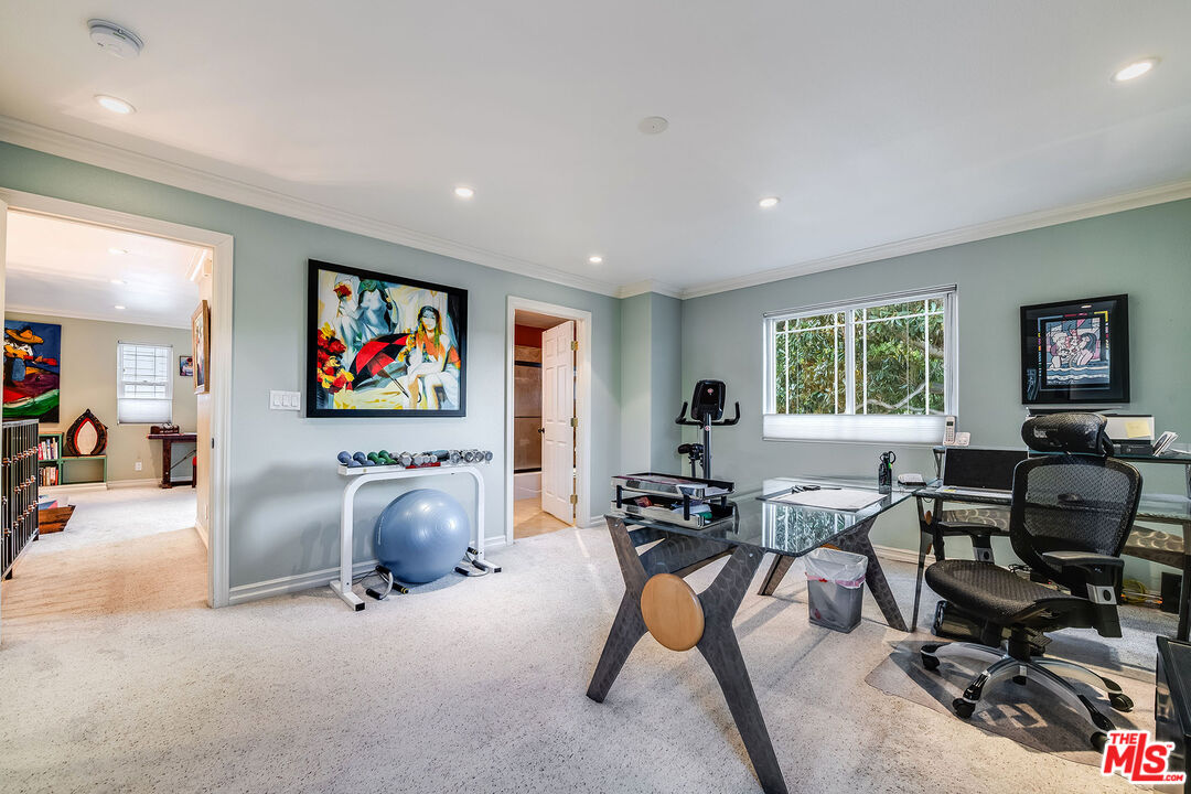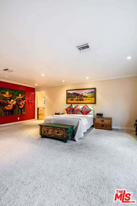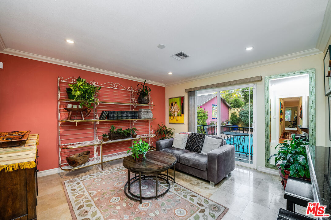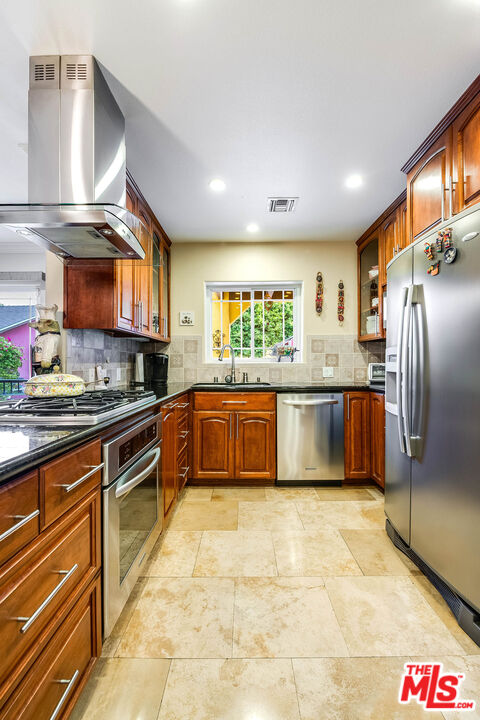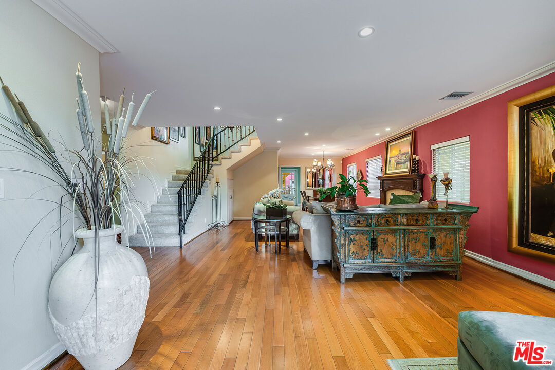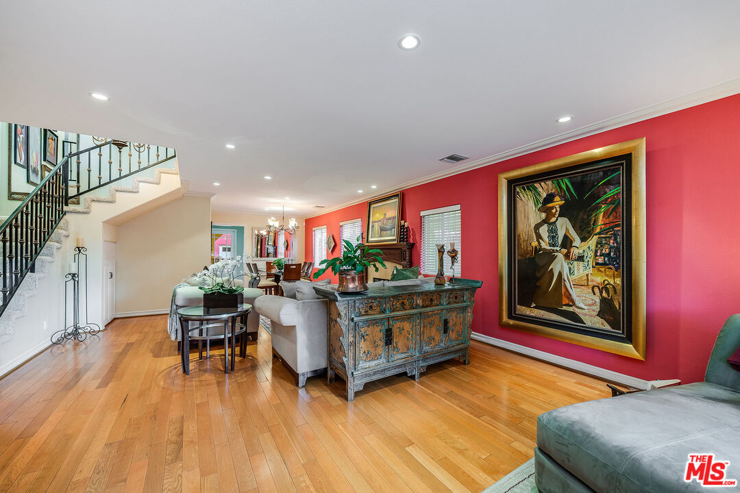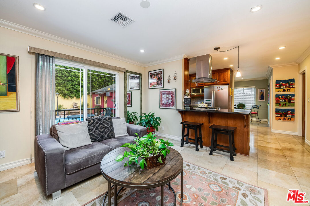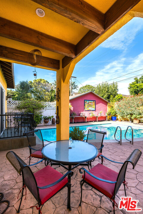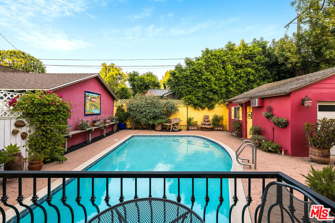 Welcome to this exquisite custom-built Tuscan-style residence, where timeless traditional design meets modern comfort. Offering 4 bedrooms, 4 bathrooms, and 3,206 sq. ft. of elegant living space, this home has been lovingly maintained in pristine condition for nearly two decades. The inviting entry opens to a gracious living room with a fireplace and a formal dining area, perfect for entertaining. A gourmet granite kitchen anchors the home with high-end stainless steel appliances, travertine floors, a walk-in pantry, and a charming breakfast nook filled with natural light. The romantic primary suite is a true retreat, featuring a spa-inspired bathroom with travertine finishes, soaking tub, separate shower, and a spacious walk-in closet. A versatile upstairs loft with balcony and a private downstairs guest suite provides flexibility for today's lifestyle. Throughout the home, rich details aboundhardwood floors, crown molding, recessed lighting, custom dual-paned windows with retractable screens, and designer finishes. Outdoors, enjoy resort-style living with a sparkling pool, lush landscaping, and multiple patio spaces ideal for gatherings. The two-car garage, previously used as a multi-purpose room, adds to the home's versatility, while the newly stamped concrete driveway offers ample parking. Ideally located just minutes from major studios, shops, and dining, yet tucked away in a peaceful neighborhood, this home captures the very best of Toluca Lake and Studio City living.