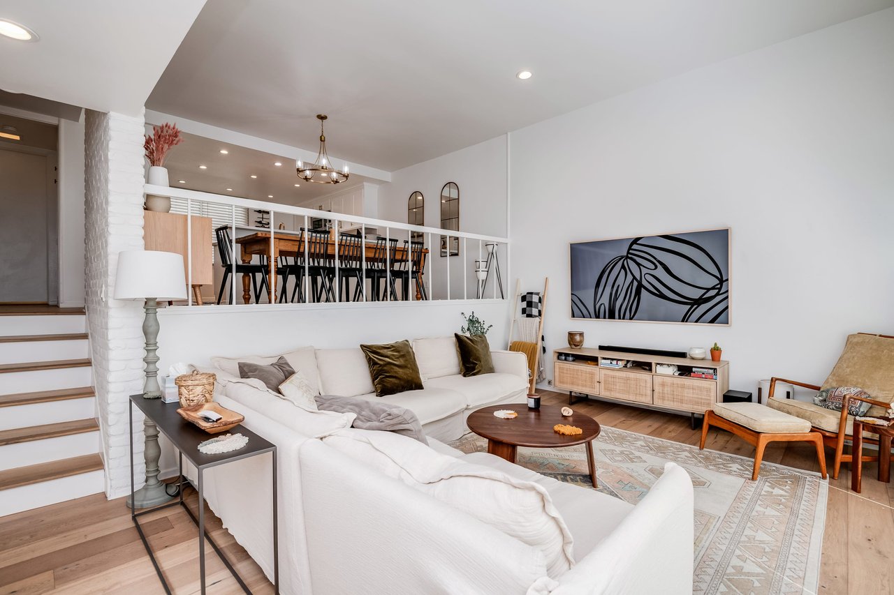 Ultra stylish tri-level townhome in one of Toluca Lake/Burbank's best complexes. Enjoy an executive/entertainer's lifestyle with modern+farmhouse upgrades incl. French white oak oors throughout, a bright open living room, 20' ceiling and entire wall of glass that oods interior with natural light. Overlooking the living room are the open plan dining room and new high-end kitchen equipped with Viking stainless steel appliances incl. gas range, pantry, quartz countertops and breakfast bar. Private patio provides shade trees for yoga, grilling and dining al fresco. Spacious master oers generous closet space and spa-like bathroom with glass/subway tile shower and sleek quartz vanity. All bathrooms are polished to perfection with designer updates. Large secondary bedrooms make perfect guest quarters and oce/studio. Head to the inviting heated pool for exercise and relaxation. In-unit laundry and direct access 2-car attached garage. Close to farmers market, eateries and shopping.