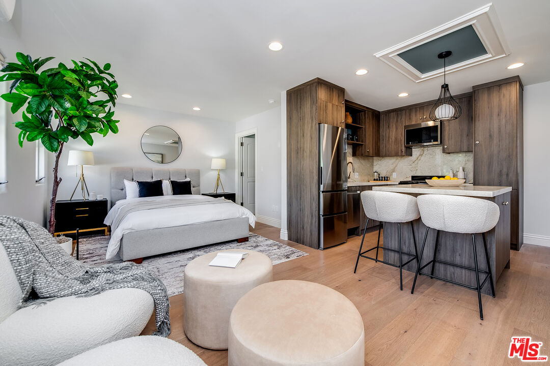 Welcome to 4359 Clybourn Avenue. South of Riverside. A distinguished residence that embodies the refined marriage of elegant Spanish Colonial Revival architecture and contemporary sophistication. Situated behind gates on one of Toluca Lake's most coveted, tree-lined streets. This private and impeccably updated estate features 4 bedrooms, 5 bathrooms, and 2,926 square feet of thoughtfully curated living spaceincluding a newly built two-story ADU and resort-style outdoor amenities. Step through the arched tower entry into a sun-drenched interior that seamlessly blends old-world charm with modern design. Rich hardwood floors, arched ceilings, and dramatic architectural detailing frame the home's inviting layout. The formal living room, anchored by a fireplace and handcrafted leaded glass windows, flows effortlessly into the coffered-ceiling chef's kitchencomplete with a honed marble island, Thermador appliances, pot filler, beverage bar, and cozy breakfast nook. The primary suite is a private retreat featuring an impressive custom wood pyramid ceiling, spacious walk-in closet, and a spa-like en suite with a freestanding tub, walk-in shower, and double vanities. Two additional bedrooms are connected by a beautifully appointed Jack-and-Jill bathroom. A fourth bedroom in the ADU with en suite bath offers ideal accommodations for guests or multigenerational living. Outside, the gated backyard oasis awaitscomplete with a sparkling pool, above-ground spa, multiple patios, and lush landscaping designed for both relaxation and entertaining. The detached 1-car garage and long gated driveway provide ample parking and privacy. At the rear of the property, a versatile two-story ADU offers the perfect solution for today's evolving lifestyles. The lower level includes a spacious living area, gym, laundry area, and powder room. Upstairs, you'll find a full kitchen with stainless appliances, an open sleeping area, and a beautifully finished bathroomideal for a home office, guest suite, creative studio, or extended family. Located just minutes from Toluca Lake Village, top-rated schools, and major studios, this exceptional residence delivers timeless elegance, modern comfort, and an unmatched location in one of LA's most iconic neighborhoods.