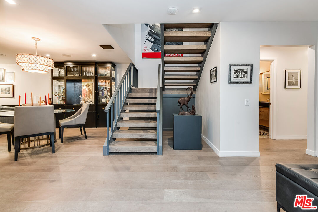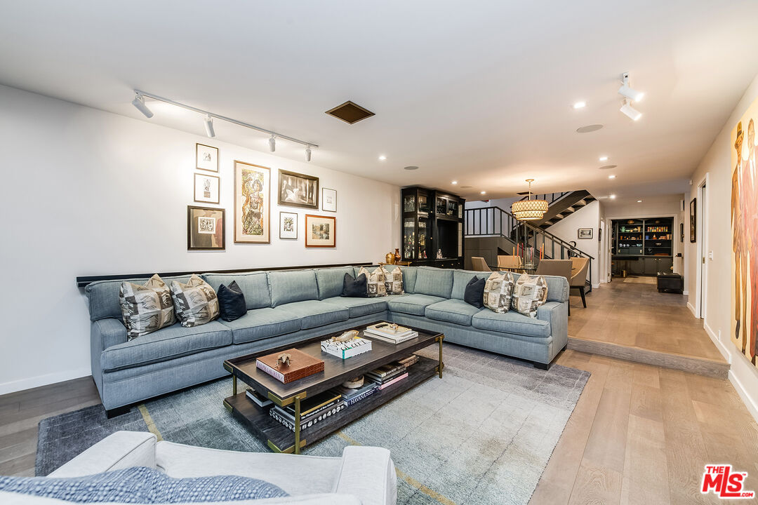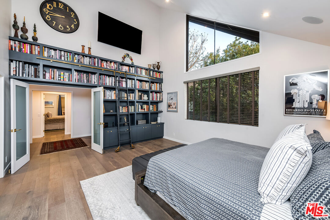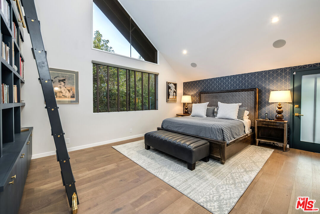 A Curated Mid-Century Gem in Coveted Toluca Lake.Nestled in one of Toluca Lake's most exclusive pockets, this fully renovated mid-century townhouse is a striking blend of timeless architecture and modern sophistication. Offering3 bedrooms, 3 bathrooms, and 2,696 sq ft of living space, this home is as generous in scale as it is in style.The residence has been thoughtfully transformed into a design-forward sanctuary with dramatic interiors and soaring 21-foot ceilings.Step inside to an expansive, light-filled layout anchored by a statement kitchendrenched in a rich navy-cobalt hue, accented with brass fixtures, and wrapped in elegant tones of blue and gray. The open-concept flow connects seamlessly to the dining and living areas, creating the perfect setting for entertaining or relaxing.Upstairs, you'll find a spacious guest suite, home office nook, and a cozy gym retreat. Custom 12-foot library shelves line the walls of the primary bedroom, while hidden attic spaces provide clever, ample storage.Located within a secure, gated community, residents enjoy resort-style amenities including a pool, spa, tennis court, and lush landscaped grounds. Offered fully furnished, this rare property delivers both privacy and community, just moments from Hollywood studios, Toluca Lake Village, and top local amenities. A true masterpiece of form, function, and lifestyle.