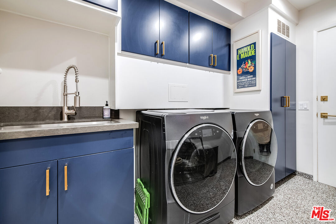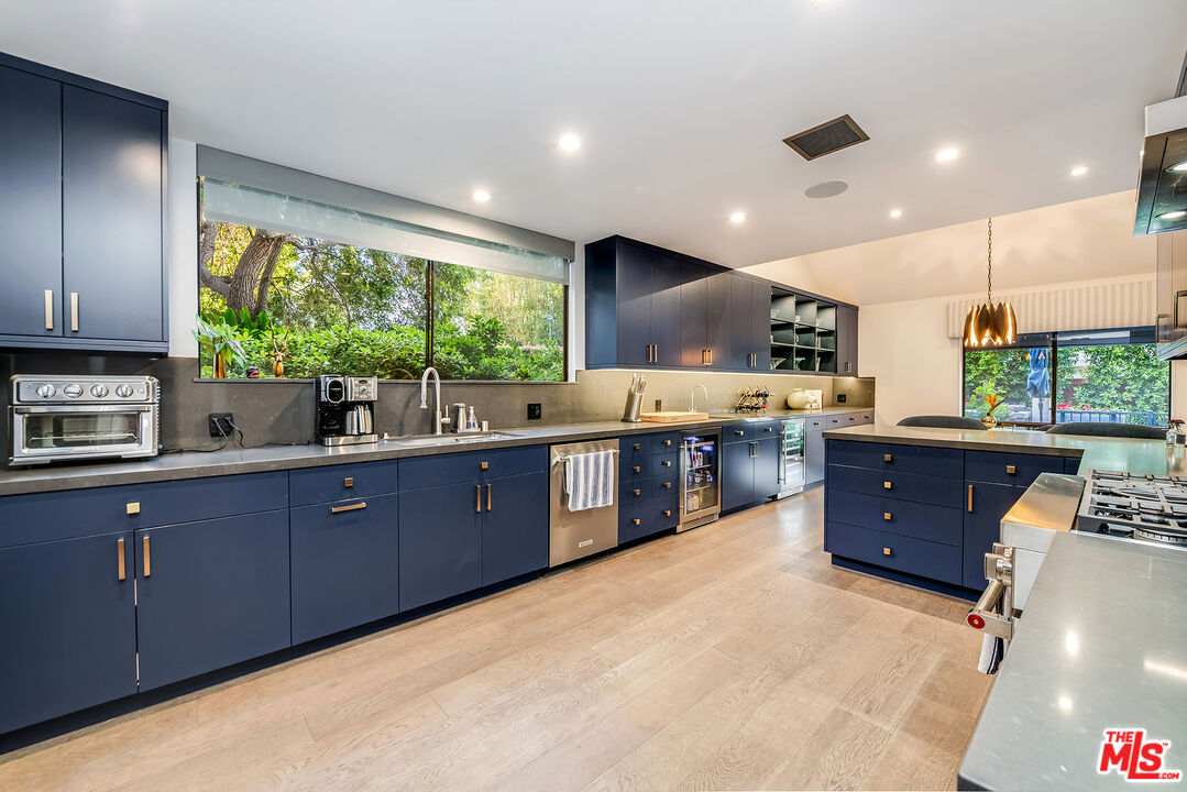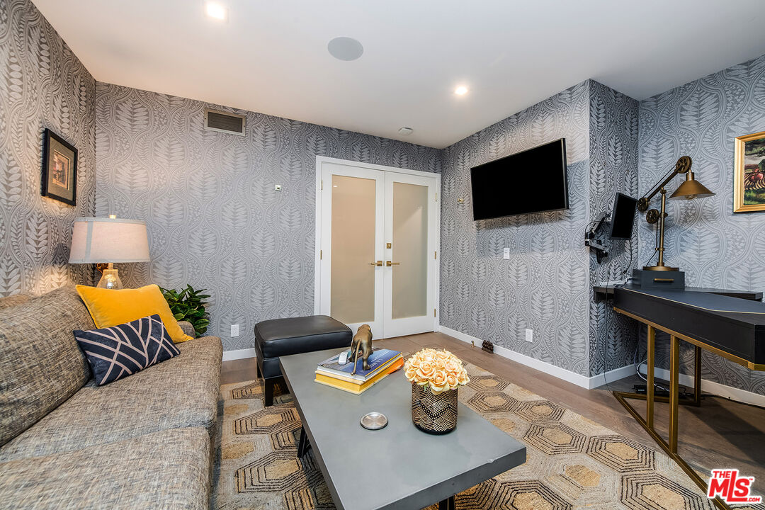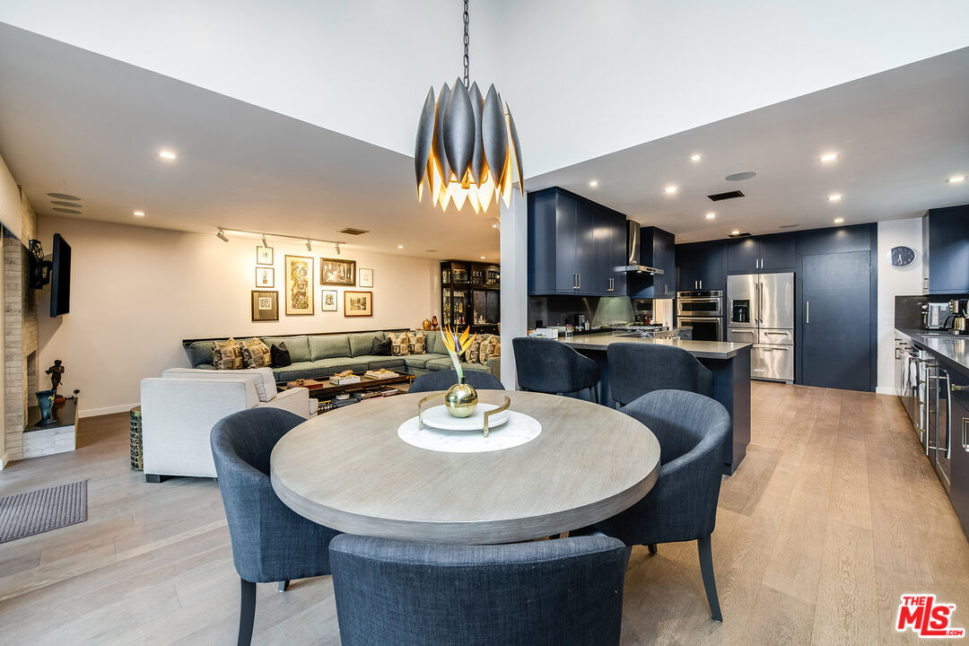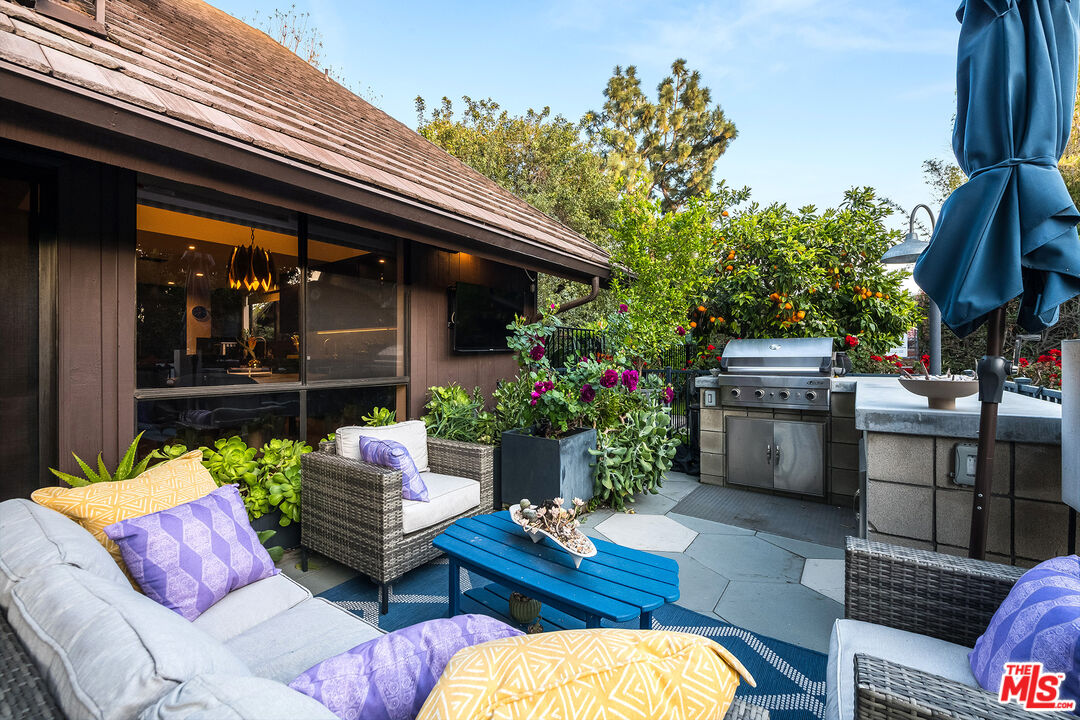 A Curated Mid-Century Gem in Coveted Toluca Lake.Nestled in one of Toluca Lake's most exclusive pockets, this fully renovated mid-century townhouse is a striking blend of timeless architecture and modern sophistication. Offering3 bedrooms, 3 bathrooms, and 2,696 sq ft of living space, this home is as generous in scale as it is in style.The residence has been thoughtfully transformed into a design-forward sanctuary with dramatic interiors and soaring 21-foot ceilings.Step inside to an expansive, light-filled layout anchored by a statement kitchendrenched in a rich navy-cobalt hue, accented with brass fixtures, and wrapped in elegant tones of blue and gray. The open-concept flow connects seamlessly to the dining and living areas, creating the perfect setting for entertaining or relaxing.Upstairs, you'll find a spacious guest suite, home office nook, and a cozy gym retreat. Custom 12-foot library shelves line the walls of the primary bedroom, while hidden attic spaces provide clever, ample storage.Located within a secure, gated community, residents enjoy resort-style amenities including a pool, spa, tennis court, and lush landscaped grounds. Offered fully furnished, this rare property delivers both privacy and community, just moments from Hollywood studios, Toluca Lake Village, and top local amenities. A true masterpiece of form, function, and lifestyle.